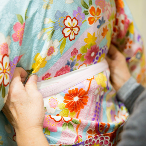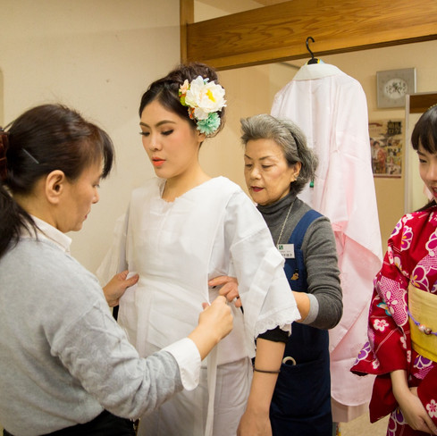 จากนั้นก็มาถึงคิวสาวๆแต่งตัวบ้างนะคะ ขั้นตอนการแต่งชุดฟุริโซเดะจะซับซ้อนกว่าชุดกิโมโนผู้ชายมากค่ะ โดยจะมีผ้าข้างในถึง 5 ชั้นเลยนะคะ